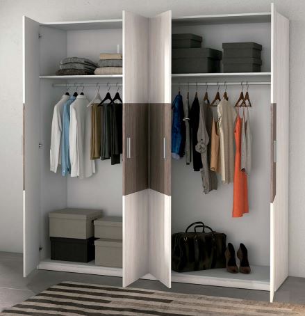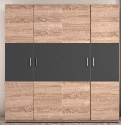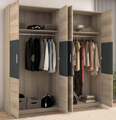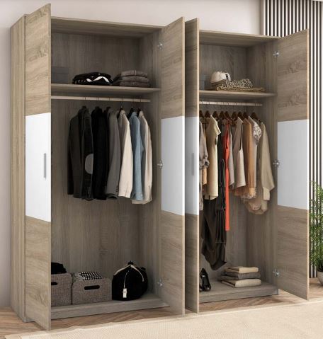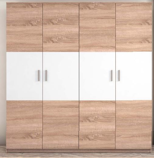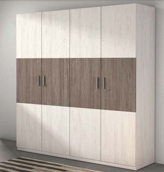 Con unas dimensiones de 206x200x56 cm, este armario ofrece una amplia capacidad para organizar tus prendas y accesorios con facilidad. Su diseño espacioso y bien distribuido te permite mantener todo en orden, mientras que sus cuatro puertas proporcionan un acceso conveniente a tus pertenencias.