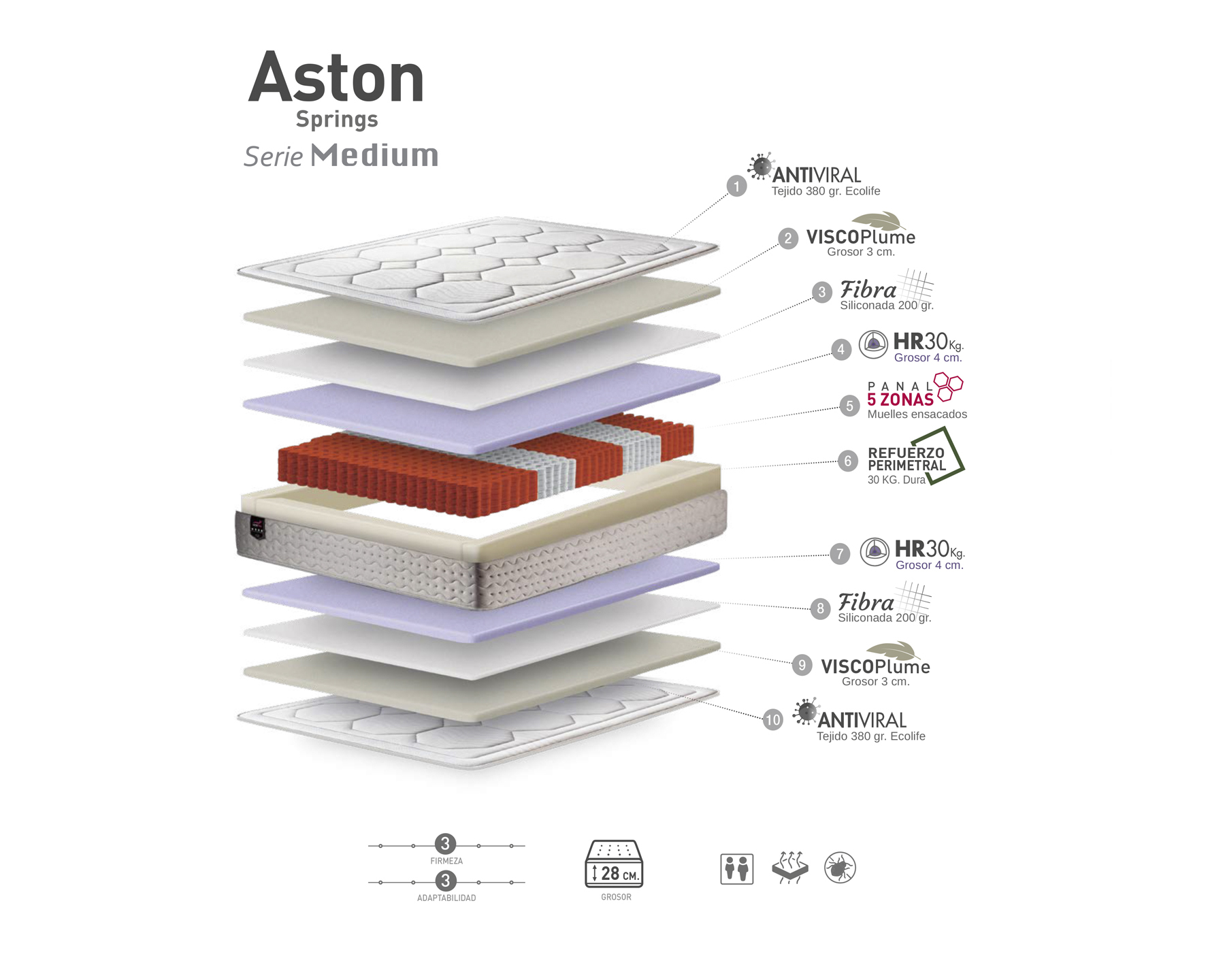 MODELO ASTON DE MULLES ENSACADO ,lleva 3 cm de visco-pluma por ambas cara, es un material que se adapta a tu cuerpo ayudando a distribuir la presión del cuerpo y disminuir el dolor de la columna,