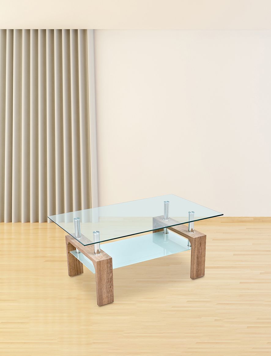 Envío rápido en toda la peninsulaMESA DE CENTRO DE CRISTAL TEMPLADO CON PATAS DE MADERA