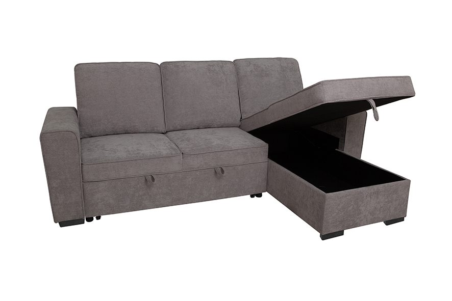 CARACTERÍSTICAS- Shaiselongue convertible en cama.- Arcón en el módulo shaiselongue.- Estructura de madera.- Relleno de espuma.- Sistema de apertura cama inferior extraíble.- Preparada para montaje derecha o izquierda.